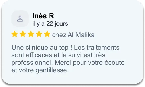 Bienvenue chez Al Malika – votre destination pour la beauté et le bien-être. Nous sommes une clinique esthétique de premier plan, spécialisée dans des traitements innovants et efficaces qui vous aident à vous sentir au mieux de vous-même.